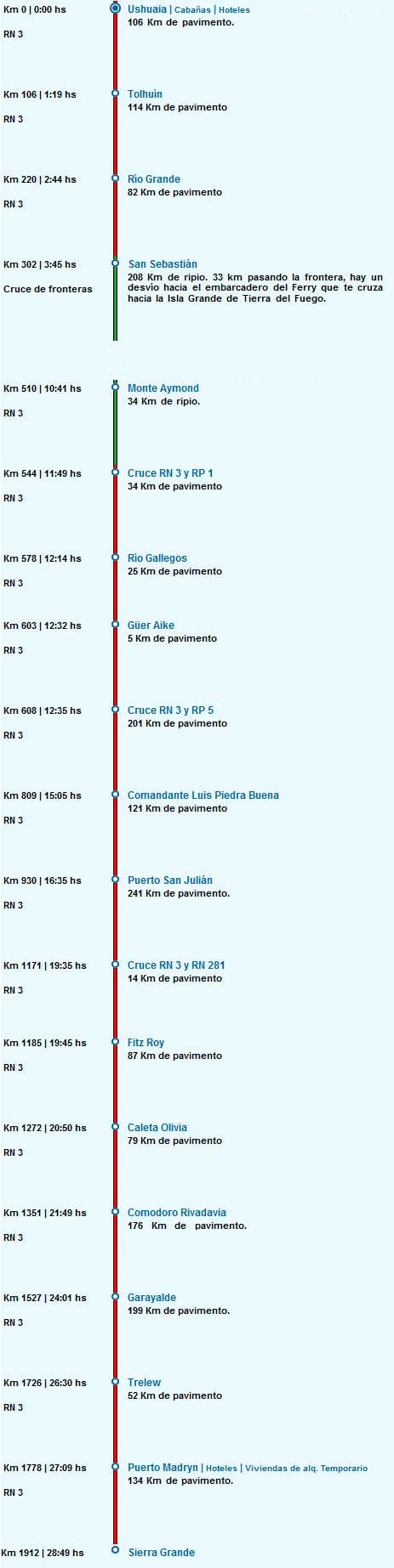 Se Informa a los turistas que de Sierra Grande a Playas Doradas hay 28km de ripio por la Ruta Provincial N°5