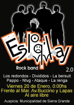 Hoy por la noche habrá un recital de la banda de Sierra Grande "Es Lo Que Hay", y de Fuzzion Band que deleita a las chicas con sus covers de todos los géneros musicales, desde las 23 en avenida Buccino esquina Lapas.